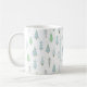 Create a Christmas holiday season themed mug personalized with a monogram and handwritten script name featuring a pattern of modern, hand drawn abstract Christmas trees and forest trees in winter snow in blue and green. Contact the designer via Zazzle Chat or makeitaboutyoustore@gmail.com if you'd like this design modified or on another product.