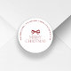 Trendy minimalist red bow simple, elegant typography Merry Christmas holiday custom round return address sticker label.