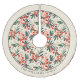Modern Red Christmas Holly Berries Personalized Brushed Polyester Tree Skirt. Circular tree skirt with a festive holly berry pattern on a neutral background. The design features green leaves and red berries, creating a cheerful holiday vibe. Your personalized family name is on a neutral border.