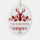 This modern elegant Monogram Christmas ornament makes a great keepsake, with classic deer antlers and holly leaves framing the name on the front, and a photo template on the back.
