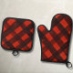 Modern Christmas Painted Red Black Plaid Tartan Oven Mitt & Pot Holder Set