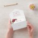 This beautiful Christmas holiday wedding all in one invitation is the perfect way to announce your upcoming nuptials. The invitation features a gold frame with red Poinsettias around it. The invitation is printed on high-quality cardstock and comes with a matching envelope. There is an attached RSVP perforated card that makes it easy for your guests to return their replies.