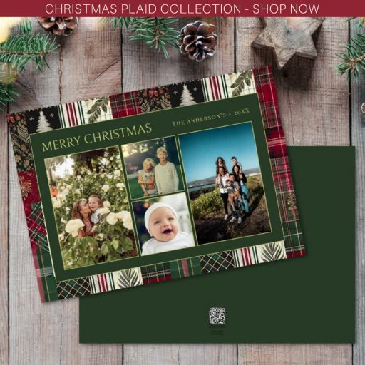 This Design features Christmas and Holiday Theme with Modern and Festive Plaid, Christmas Trees, Jingle Bells and Traditional Green and Red Colors.