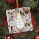 Modern Christmas Snowman Monogram Four Photo Ceramic Ornament