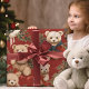 The rich red background sets the perfect stage for these endearing teddy bears, evoking a sense of warmth and tradition. Each bear is intricately illustrated, bringing a touch of whimsy and innocence to your gift-giving experience.