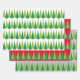 Fun and festive pattern features rows of modern triangle Christmas trees with red ornaments on three background colors