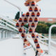 The dainty interlinked rosette design at the waist is truly unique. The poly-spandex makes for a nice fit and available in sizes 0-16. The printing is vibrant and eye-catching.