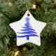 Modern Christmas Tree Stencil Print Blue Ceramic Ornament