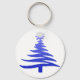 Modern Christmas Tree Stencil Print Blue Keychain