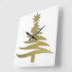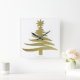 Modern Christmas Tree Stencil Print Gold Square Wall Clock