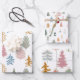 Modern pink, blue, orange, grey and green Christmas tree gift wrapping paper. Getting away from the traditional Christmas colors is easy with this trio of wrapping paper with coordinating designs.