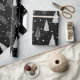 Modern Christmas holiday season giftwrap roll featuring a pattern of modern, abstract Christmas trees and forest trees in winter snow in black and silver gray colors. ASSISTANCE: For help with design modification or personalization, transferring the design to another product or if you would like coordinating items, contact the designer BEFORE ORDERING via the Zazzle Chat MESSAGE tab below or email makeitaboutyoustore@gmail.com.