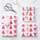 A bright and modern holiday themed gift wrap featuring red, bright pink and light pink Christmas trees in a simple pattern. Come as a set of 3 sheets.