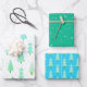Modern Christmas Trees Turquoise Blue Pattern Trio Wrapping Paper Sheets