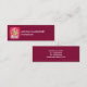 Mini business card with a cool Christmas illustration. The text says Merry Christmas. Designed with a tree shaped mound of presents with festive snowflakes, stars, christmas baubles and glowy looking sparkles. The background is a vibrant reddish pink color.