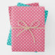 These fabulous gift wrap sheets with aqua, dark pink and medium pink with white polka dots will make gift wrapping a delight. Everyone will love the bright happy colors. They coordinate perfectly with the Happy Santa, Happy Snowman, and Happy Penguin Gift wrap and tags. You can match everything and have it be unique to you and your family.