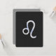 A silver chrome like Leo zodiac symbol on a black snake skin style decor background. A great urban automotive classy looking birthday gift idea.