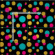 Elegant modern trendy abstract random circles seamless pattern. Gold glitter, pink and blue circles over customizable black background.