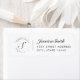 Custom-designed return address labels featuring personalized hand calligraphy monogram encircled in a modern elegant dotted circular wreath.
