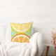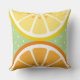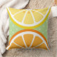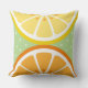 Freshen up your indoor or outdoor living spaces with this fun summer pillow featuring colorful lemon and orange slices, playful polka dots, and pale green background. This design is minimalistic and modern, and it will complement any style of décor.