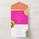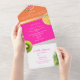 Celebrate your love with a burst of color and joy with our citrus fruit wedding all-in-one invitation! Vibrant shades of orange, pink, and green dance across the invitation, creating a lively and fun atmosphere. At the back, your guests will find a photo of the happy couple, along with a website and QR code for easy RSVP. It's the perfect way to invite your loved ones to join in the celebration of your special day filled with love, laughter, and bright memories!