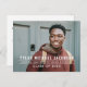Announce your graduate in style with this modern graduation announcement postcard and party invitation. Design features a senior photo of your grad with white striped overlay wording that can be personalized with the graduates name, school, and class year. Includes an invitation to a graduation party on the back.
