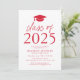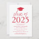 Plain white envelopes are included with paper invitations and will come to fit the invitation size you select. If you don’t need the envelopes, you may choose to not receive them by selecting the dropdown below "Envelopes" and choosing "None." If you’d like to have a design on your envelopes, you can browse all of these available envelopes to find the design that complements your Modern Class Of 2025 Red Graduation Party Invitation.