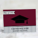 Simply elegant custom burgundy red thank you notes that can be personalized with the high school or college graduate's name, their school, and class year. Design features a black graduation cap, modern banner detail, and subtle striped border.