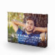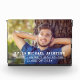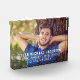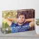Celebrate your graduate with this modern graduation photo block. Simple design features a senior portrait of your grad with white striped overlay wording in varsity sports style lettering that can be personalized with the graduates name, school, and class year. Makes a beautiful keepsake to display in your home.