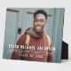 Celebrate your graduate with this modern graduation plaque with easel sign. Simple design features a senior portrait of your grad with white striped overlay wording in varsity sports style lettering that can be personalized with the graduates name, school, and class year. Makes a beautiful keepsake to display in your home.