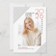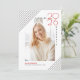 Modern lines class of 2026 graduate black and red graduation photo announcement. An elegant design that showcases your photo, black stripes on the top left anf bottom right corners, the year 2026 in red and the word "Graduate". The back includes a frame with your wording and a black and white striped border.