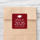 Seal your envelopes and graduation favor bags with these modern graduation stickers! The stickers feature a white graduation cap at the top of the design with "Class of 2026" displayed in bold lettering on a burgundy background. Personalize the burgundy graduation sticker with the graduate's name, school, and graduation year. This design is perfect to use for high school or college graduations.