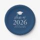 Modern Class of 2026 Script Navy Blue Graduation Paper Plates