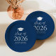 Add a personalized touch to your graduation party with these modern graduation paper plates! The paper plates feature a graduation cap at the top of the design with "Class of 2026" displayed in bold white lettering on a navy blue background. Personalize the navy graduation plates with the graduate's name, school, and graduation year. This design is perfect to use for high school or college graduation parties.