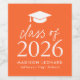 Add a personalized touch to your graduation party with these modern graduation wine labels! The wine labels feature a white graduation cap at the top of the design with "Class of 2026" displayed in bold white lettering on an orange background. Personalize the orange graduation wine label with the graduate's name, school, and graduation year. This design is perfect to use for wine, sparkling cider, or other beverages at high school and college graduation parties!