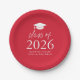 Modern Class of 2026 Script Red Graduation Paper Plates