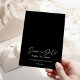 This modern classic black wedding save the date is perfect for your elegant modern wedding. This design features white simple calligraphy off set on a dark black background to match your classic traditional wedding or minimalist boho wedding in the spring, summer, fall, or winter. Please feel free to reach out to us with any questions about this design.