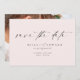 The Modern Classic Blush Pink Wedding Save The Date combines a contemporary minimalist design with elegant script in a soft blush pink, perfect for spring or summer celebrations. Featuring an option for a personal photo, it beautifully captures a modern yet boho vibe—feel free to reach out if you need any assistance with customization!