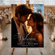 Elegant white script wedding welcome sign (poster) featuring elegant and romantic swirly calligraphy lettering with a photo. For more advanced customization of this design, please click the BLUE DESIGN TOOL BUTTON above!
