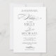 Plain white envelopes are included with paper invitations and will come to fit the invitation size you select. If you don’t need the envelopes, you may choose to not receive them by selecting the dropdown below "Envelopes" and choosing "None." If you’d like to have a design on your envelopes, you can browse all of these available envelopes to find the design that complements your Modern Classic Elegant Script Wedding Invitation.