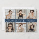 Announce your graduation in style with this minimalist 6-photo collage graduation announcement. Featuring "Graduate" in sleek white modern lettering on a bold navy background, this customizable design allows you to add your name, school, and graduation year for a personal touch. The back of the announcement showcases a sophisticated navy and white diagonal line pattern for a chic, contemporary finish. Perfect for both high school and college graduates, this elegant multi-photo design is a memorable way to share your achievement with family and friends.