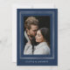 Modern Classic Navy Blue Floral Photo Wedding Invitation