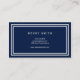 A modern classic navy blue business card featuring a white borders front and back. This business card is ideal for various professions, especially corporate professionals: Consultant, Manager, Sales Officer, Coordinator, Strategist, Freelancer, etc.