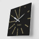 Modern Classy Decor Black Faux Gold Custom Name Square Wall Clock