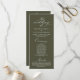 Mark the beginning of your forever with elegance using our contemporary-themed wedding program card, "the wedding of". It is designed with scroll accent that can be personalised with custom/ personalised text for your bridal party, ceremony details, memorial notes and thank you message, in Olive green theme.