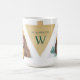 Celebrate the magical and festive holiday season with our custom holiday photo mugs. Our trendy, minimalistic holiday design features a two photo layout to display your own holiday Christmas photos within a simple Christmas tree shape. The Christmas mug is personalized with a monogram initial and family name in the middle of the faux gold Christmas tree shape. All artwork contained in this trendy minimalistic Christmas tree photos mug are hand-drawn original artwork by Moodthology. You can customize the text size, text colour, font and layout for your own personal design preference.
