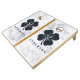 Modern Clean White Four Leaf Clover with Name Cornhole Set