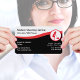 Here is a modern cleaning service business card template in a the Sleek design in black white and red color combination that stands out and makes a great first impression. Presented on rounded corner business card stock for commercial or residential cleaning.