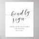 Custom-designed wedding guest book table sign featuring personalized message and "Kindly Sign" in modern hand calligraphy.