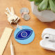 Embrace a modern twist on a timeless symbol of protection with this striking geometric evil eye design. Featuring a bold cobalt blue palette against a soft sky backdrop, this stylized nazar is designed to bring good vibes and a touch of mystical flair to your everyday style. Perfect for those who love bohemian aesthetics, spiritual talismans, and minimalist graphic art that tells a story of ancient tradition meeting contemporary design.